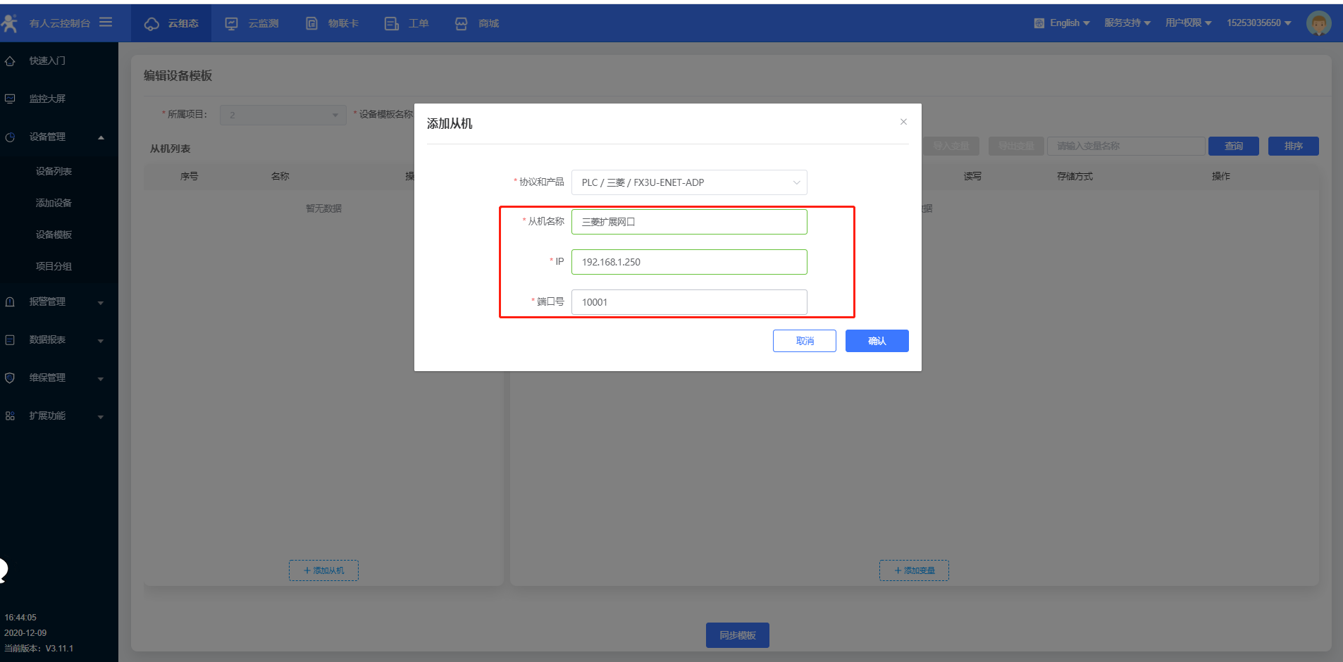 1.登錄有人云賬號和密碼,點擊添加設備,輸入PLCNET510的SN和MAC,點擊下一步