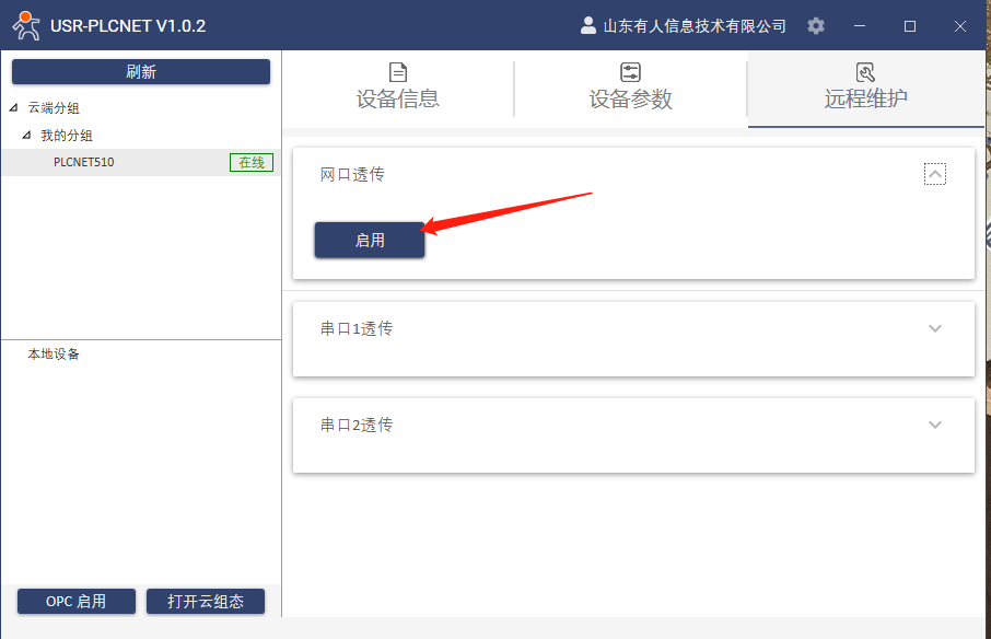 8.點擊遠程維護,啟用網(wǎng)口透傳