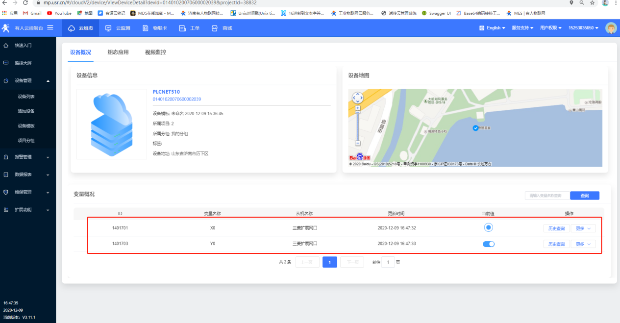 9.可以在云端的數(shù)據(jù)點(diǎn)看到數(shù)據(jù)采集
