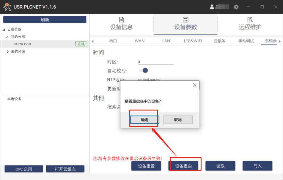 l 重啟設備(設備內(nèi)參需要重啟才能生效)
