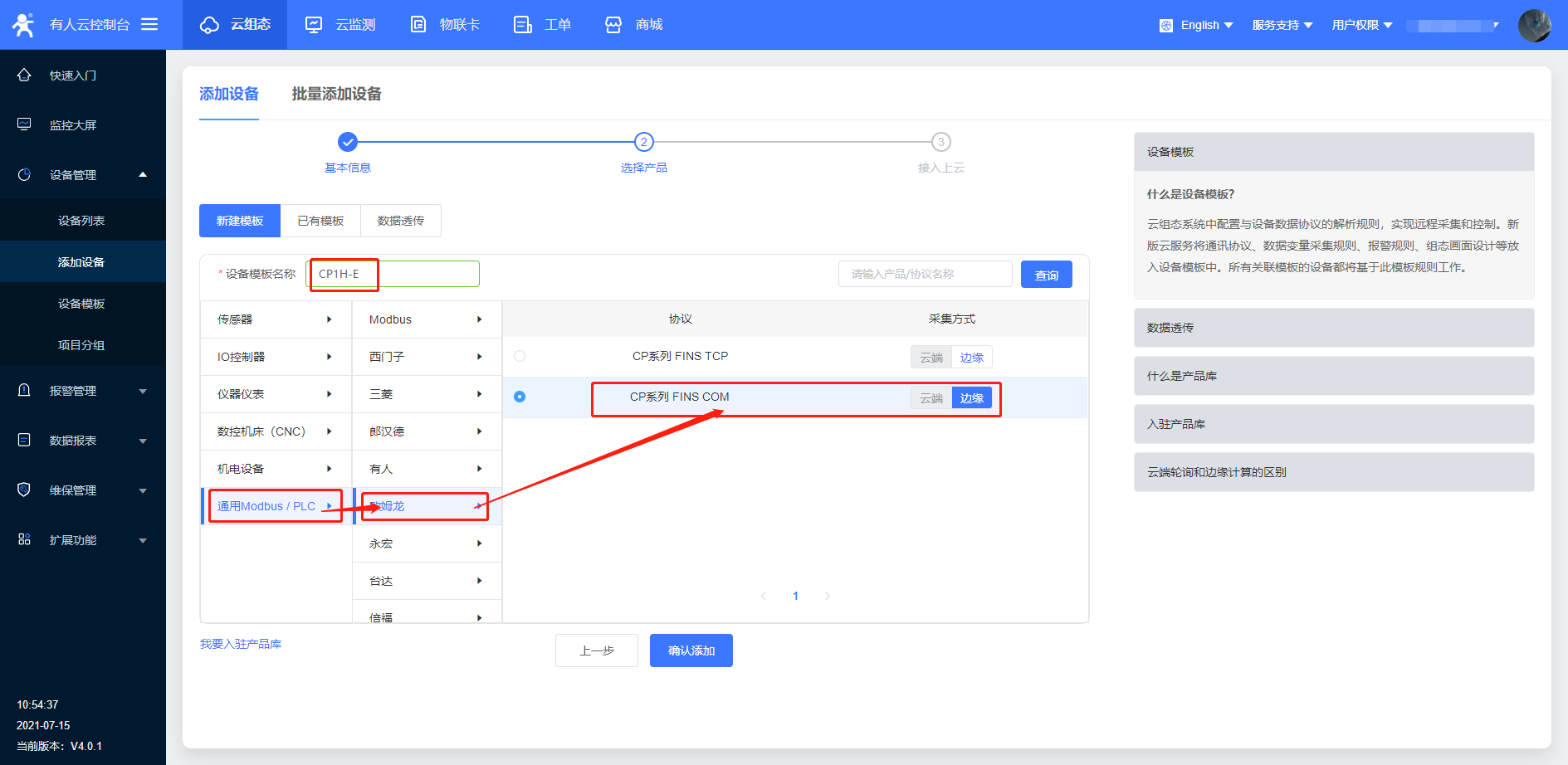 ? 新建模板添加協(xié)議并點(diǎn)擊“同步模板”(添加CP系列FINS COM模板后,剩下從機(jī)和變量等內(nèi)容任意即可,開(kāi)啟透?jìng)骱螅0搴髸?huì)失效)