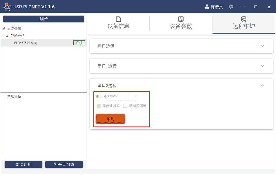 ? 重啟完成后,打開(kāi)串口2透?jìng)?,生成虛擬串口(可在設(shè)備管理器查看)