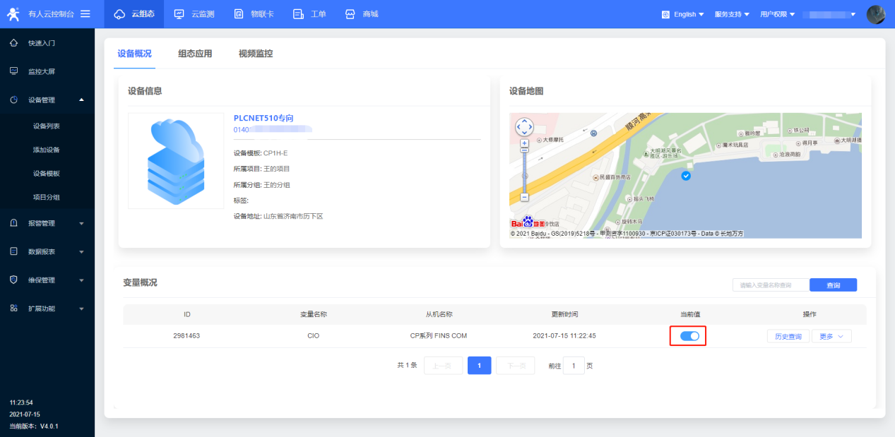 ? 重啟完成后,觀察平臺數(shù)據(jù),采集成功(數(shù)據(jù)采集時請不要打開遠程維護的透傳功能)