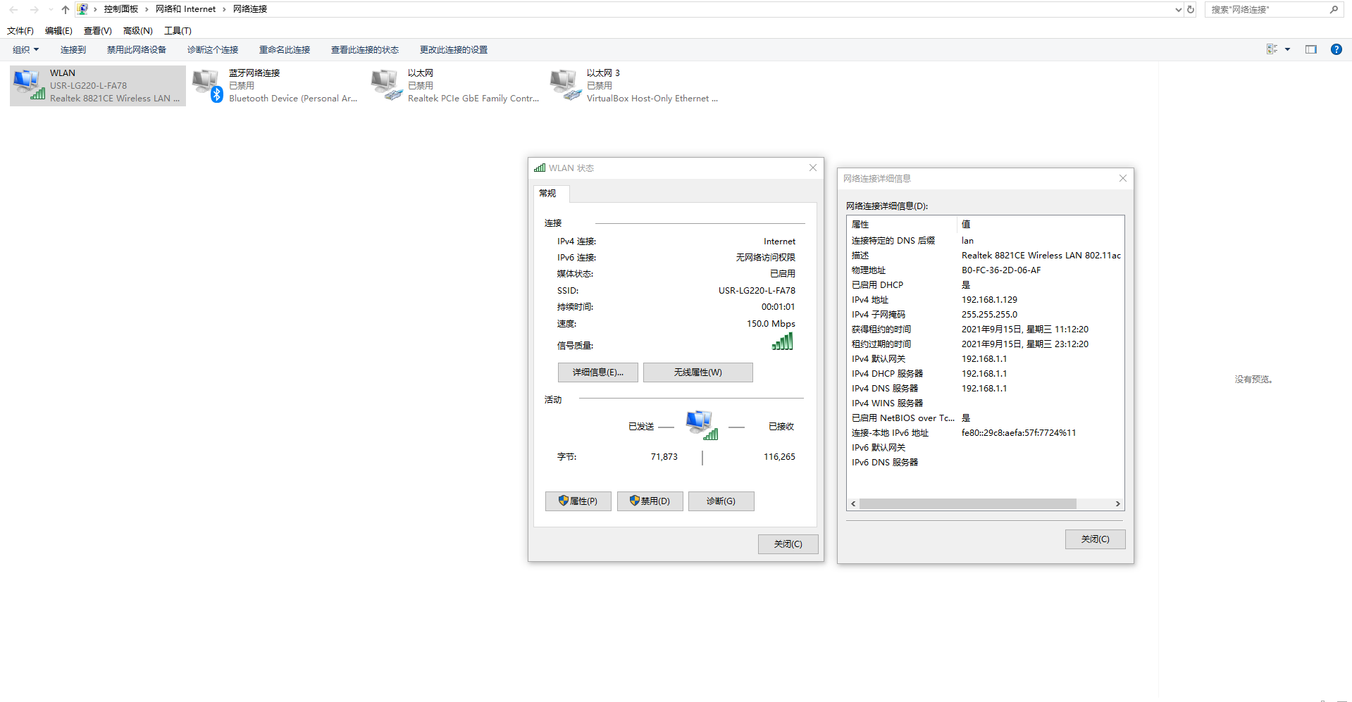1、電腦連接USR-LG220-L的WiFi,可以從控制面板看到USR-LG220-L分配給電腦的IP和網(wǎng)關。關閉防火墻。