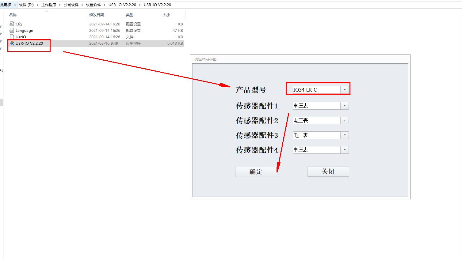 1、打開IO設置軟件,選擇產(chǎn)品型號IO34-LR-C