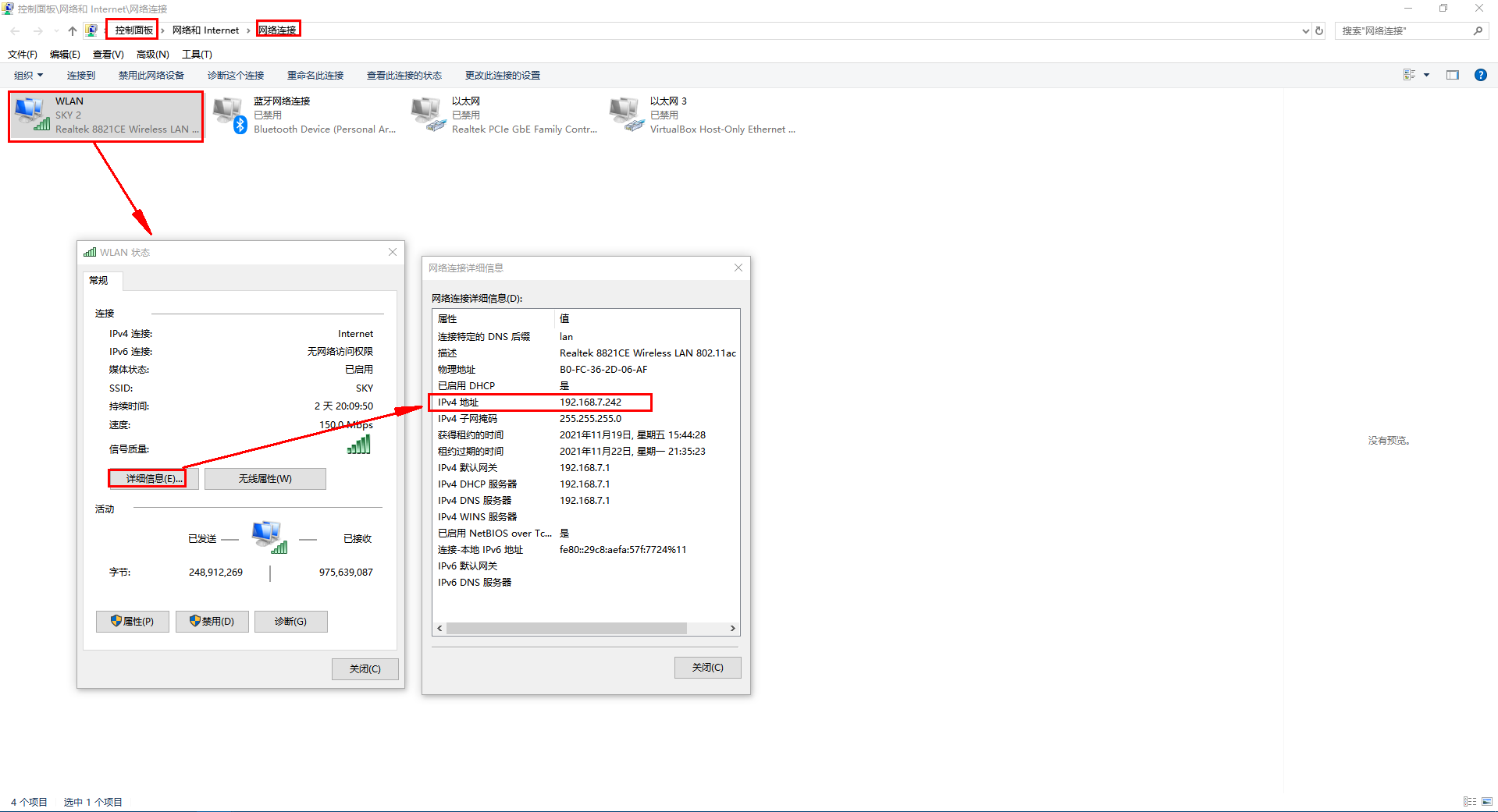 查看無線網(wǎng)卡狀態(tài),IPv4的IP地址。