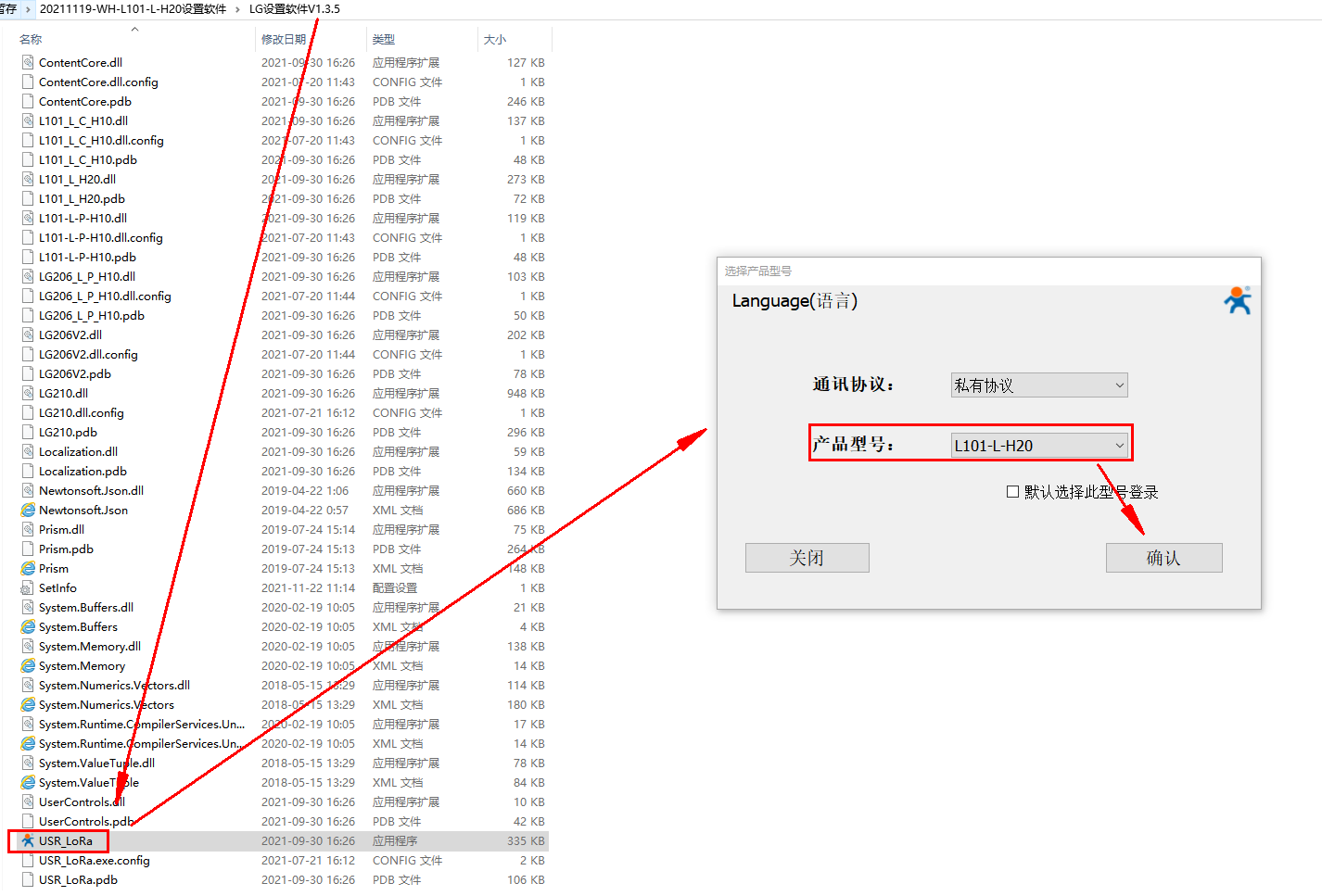 1、電腦打開WH-L101-L-H20的設(shè)置軟件,型號(hào)選擇L101-L-H20。