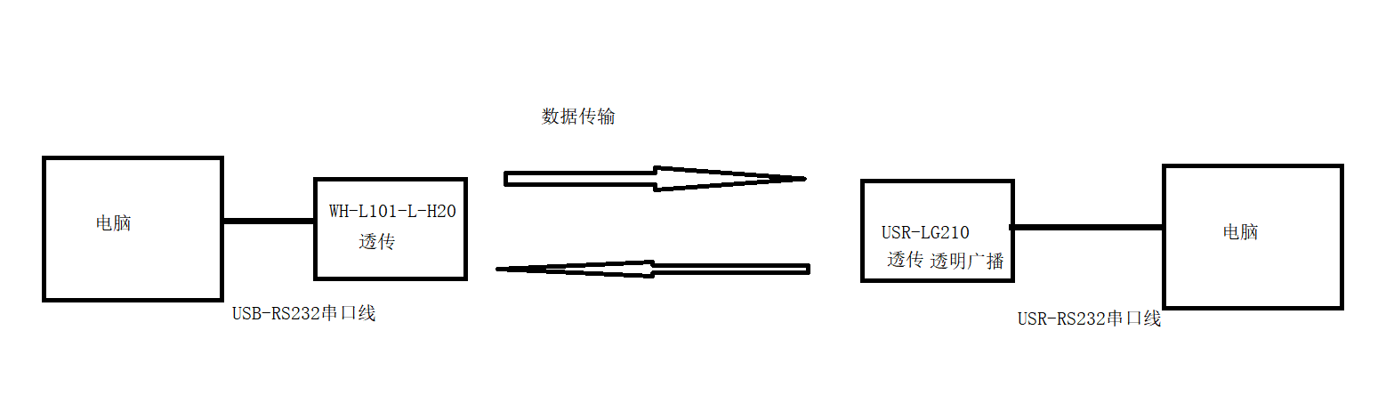 第二步:WH-L101-L-H20底板 的232串口接USB-RS232串口線接電腦,然后接12V電源適配上電。USR-LG210的232串口接USB-RS232串口線接電腦,然后接12V電源適配上電。