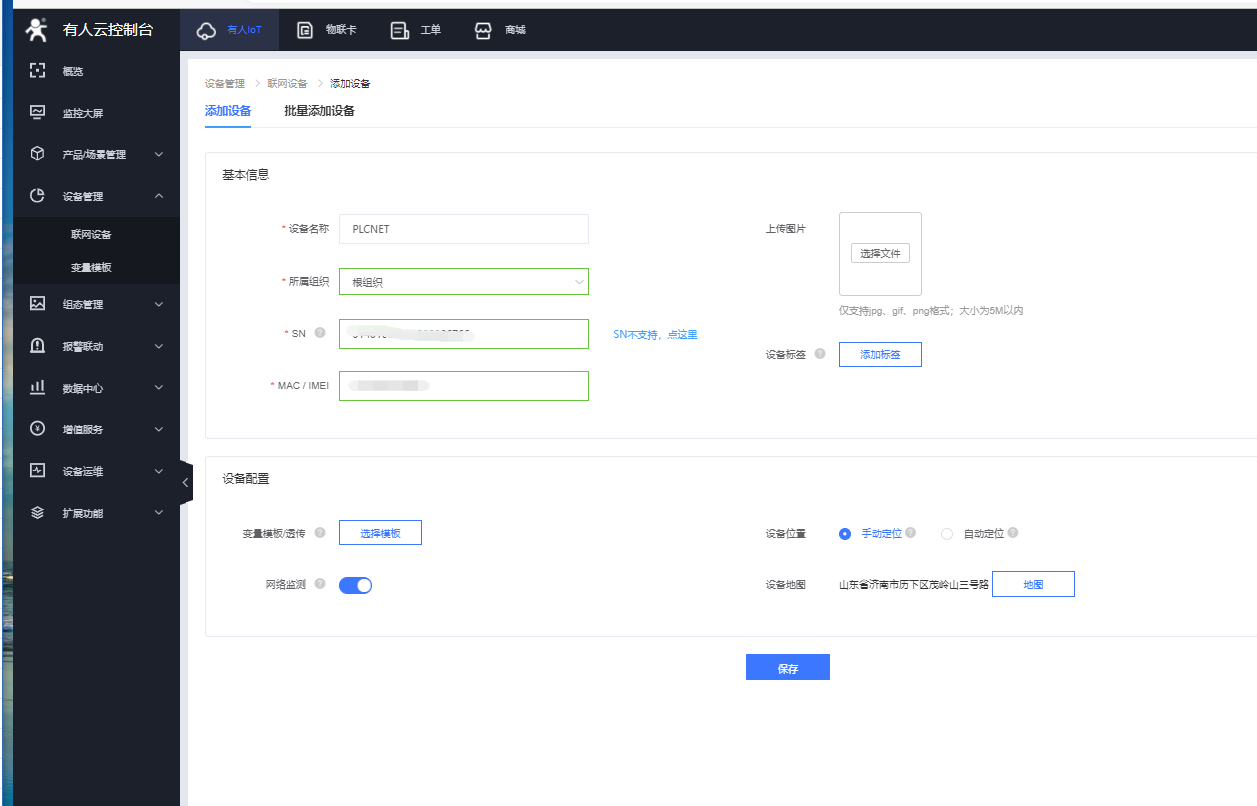 7.點(diǎn)擊保存,成功添加設(shè)備