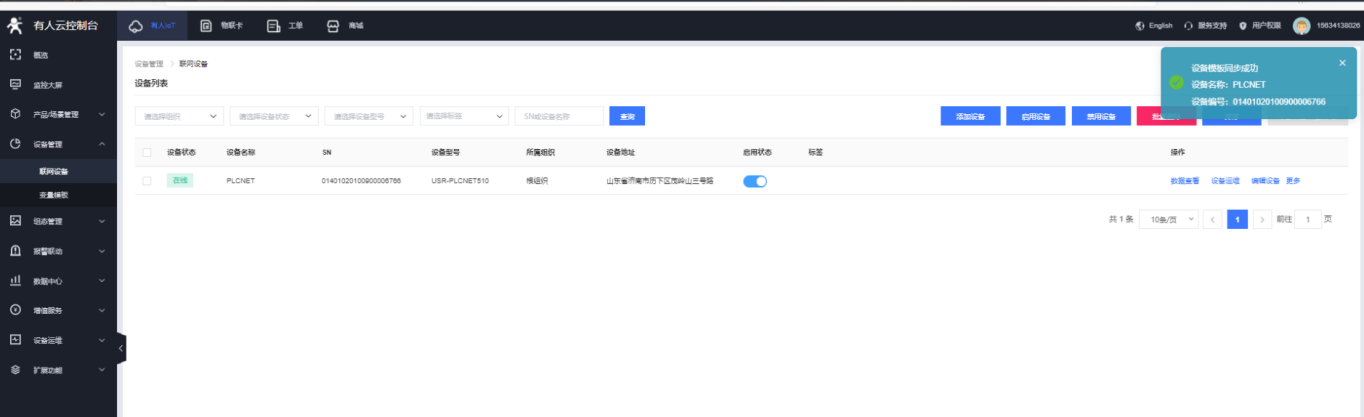 8.可在云端看到 PLCNET510 云端上線