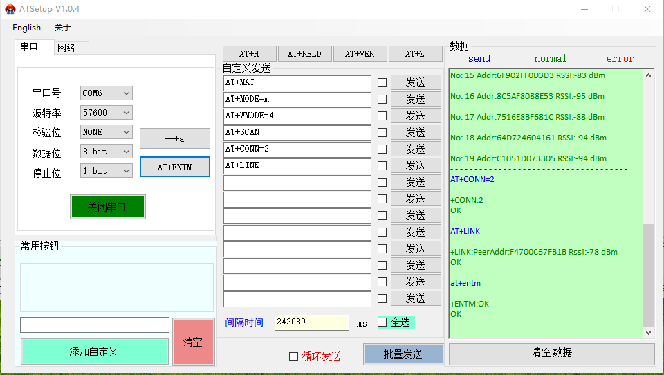 (3)根據(jù)掃描結(jié)果進(jìn)行連接,發(fā)送AT+CONN=2