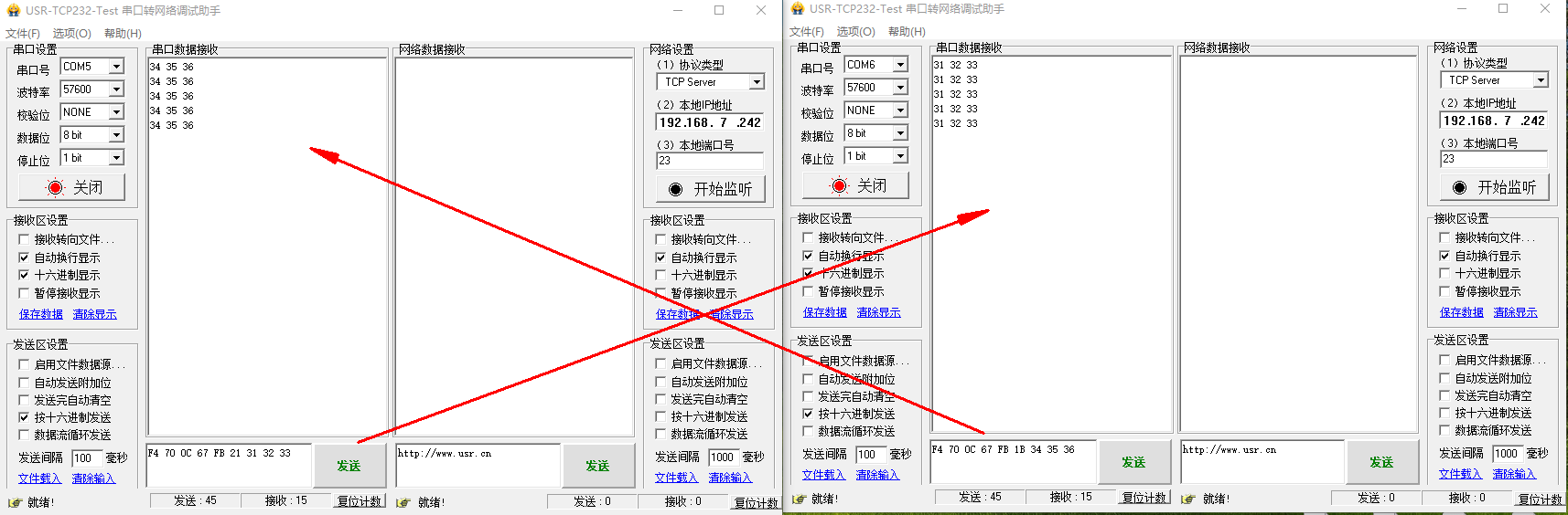 (5)查詢連接成功后,發(fā)送指令退出 AT 模式即可進(jìn)行數(shù)據(jù)傳輸: AT+ENTM