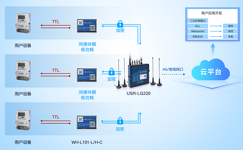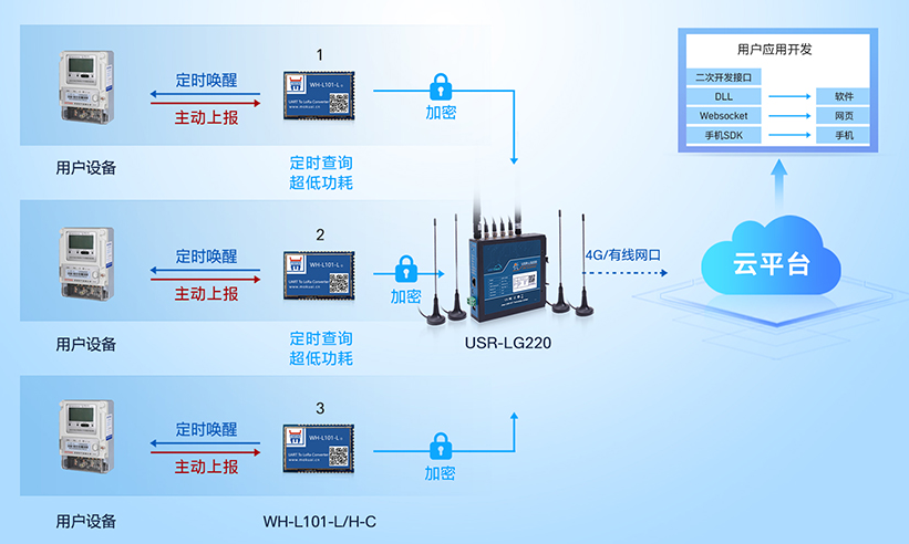 特點(diǎn):只需搭配LoRa集中器,模塊即可直接與服務(wù)器進(jìn)行數(shù)據(jù)傳輸,減少使用有線連接的繁瑣過程,適合無(wú)需考慮功耗控制的應(yīng)用領(lǐng)域。