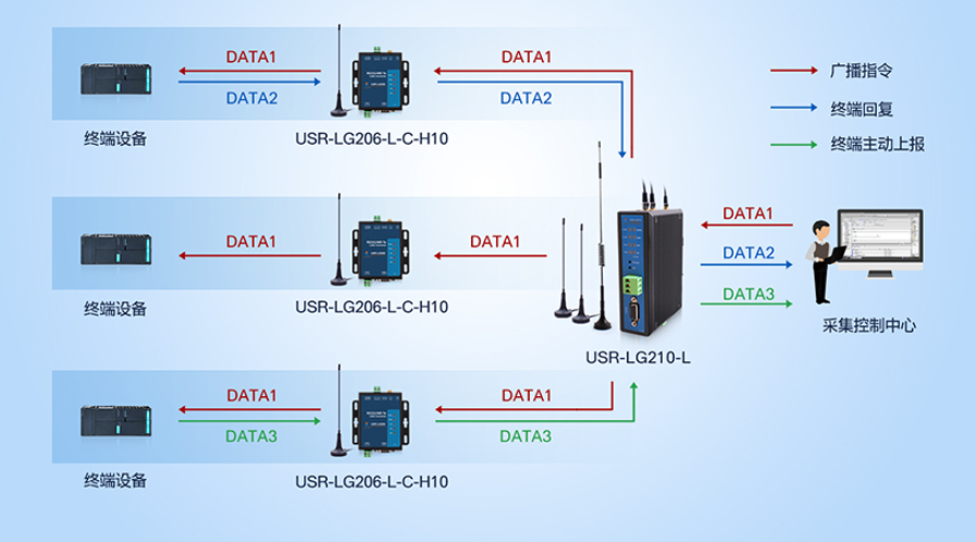 服務(wù)器與設(shè)備間可直接透明傳輸,所收即所發(fā),簡(jiǎn)單易用,LG210-L支持一對(duì)一和一對(duì)多通信。