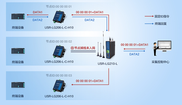 特點(diǎn):通過簡(jiǎn)單設(shè)置,LoRa集中器可自動(dòng)下發(fā)數(shù)據(jù),大幅減少服務(wù)器負(fù)載量。例如,通過Modbus指令輪詢節(jié)點(diǎn),無(wú)需服務(wù)器下發(fā),節(jié)省網(wǎng)絡(luò)數(shù)據(jù)流量。