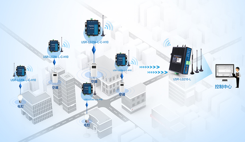 大型辦公樓需對(duì)空調(diào)、電燈等設(shè)備進(jìn)行分區(qū)域管理。此時(shí),可選用多個(gè)LG210-L與不同區(qū)域內(nèi)的空調(diào)、電燈等設(shè)備連接,分別控制不同區(qū)域內(nèi)相關(guān)設(shè)備的啟停