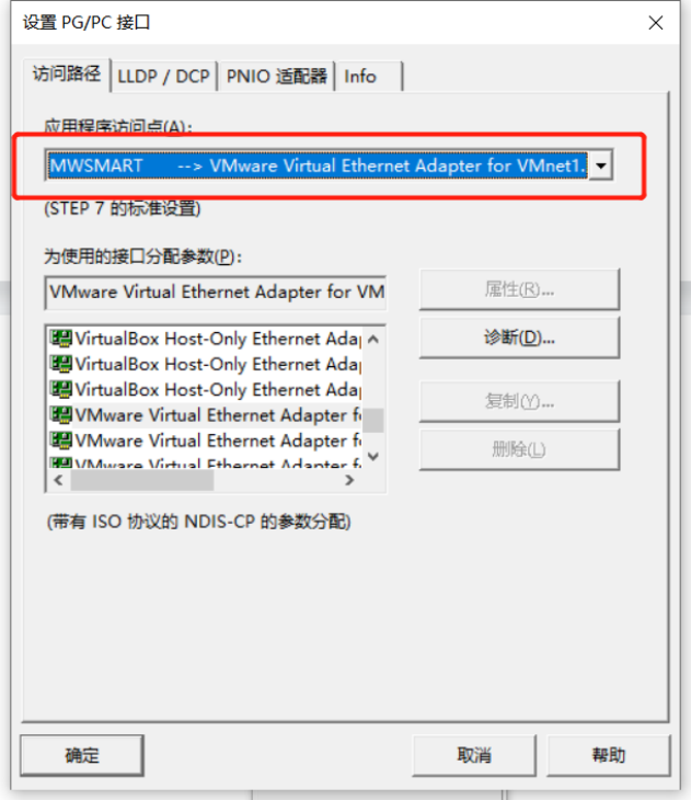 2,箭頭處,選擇MWSMART節(jié)點(diǎn),并選擇對(duì)應(yīng)的虛擬網(wǎng)卡