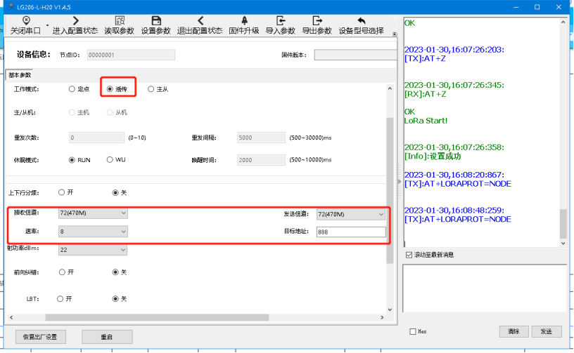 2、模塊工作在透傳狀態(tài),保證兩模塊的SPD ,CH,ADDR參數(shù)相同。兩臺設(shè)備設(shè)置同樣參數(shù)。