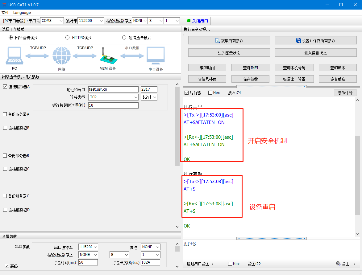 開啟安全機(jī)制 AT+SAFEATEN=ON