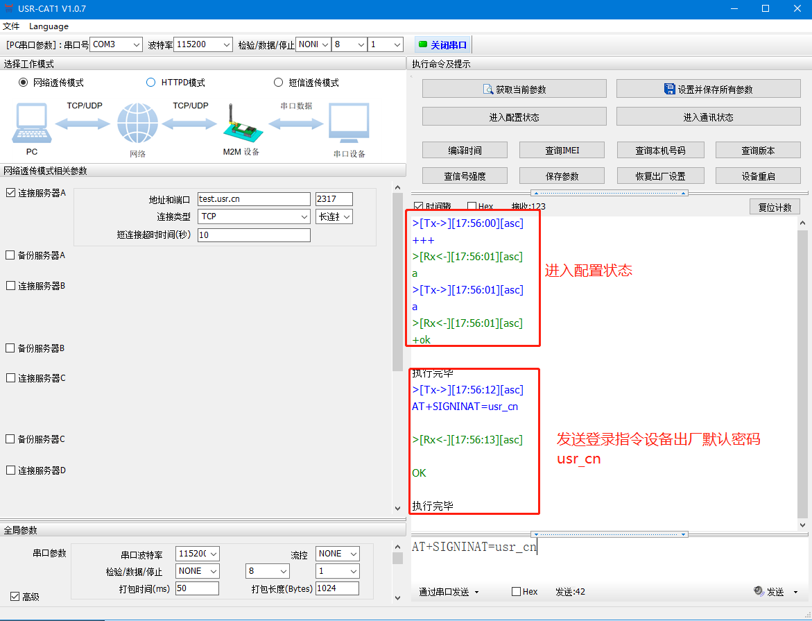 command first”,指示用戶需要先輸入登錄密碼,且 30 秒內(nèi)仍不發(fā)送登錄指令,設(shè)備將自動(dòng)退出配置狀態(tài)