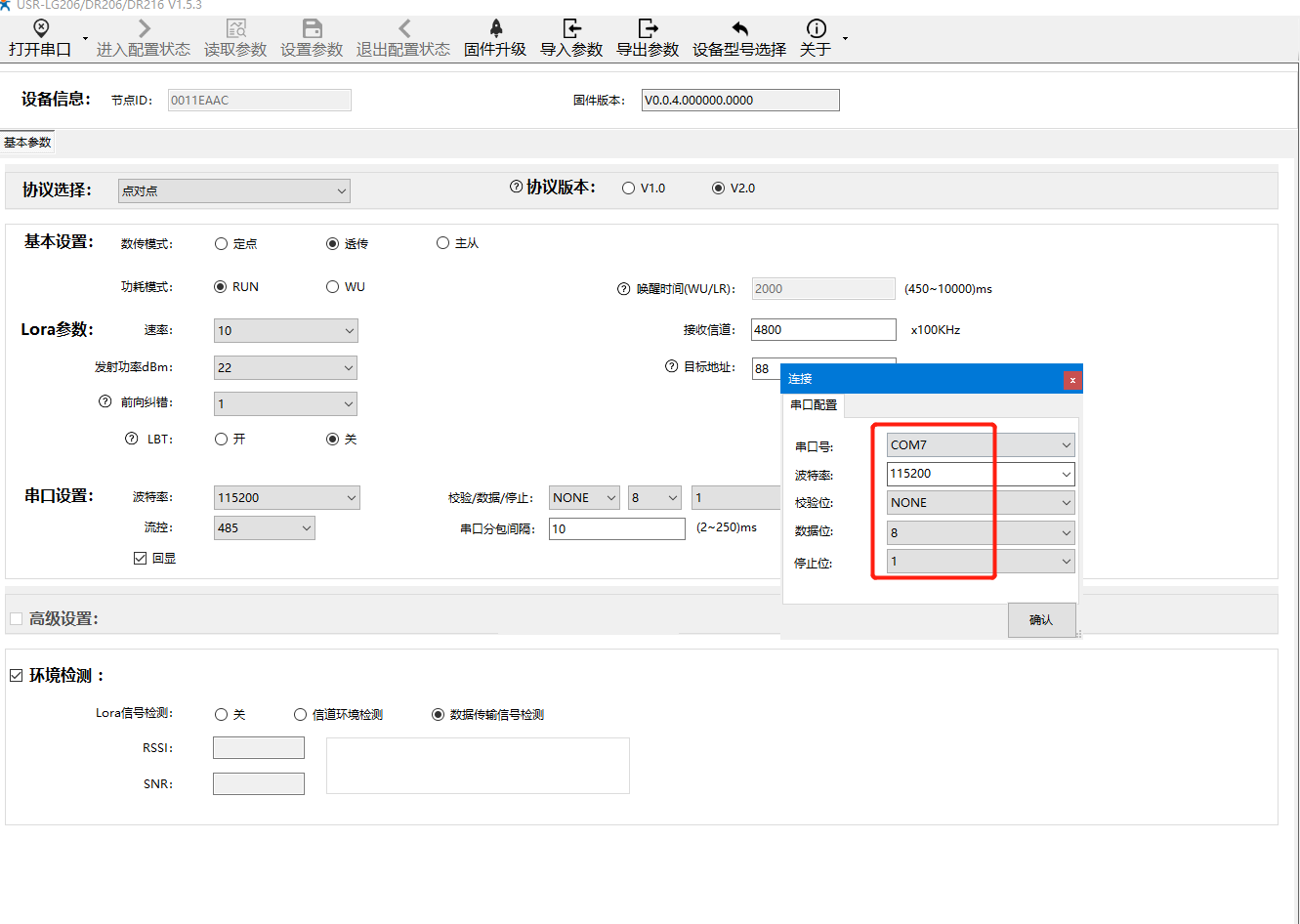 然后選擇DR206的默認參數(shù):115200;N;8;1