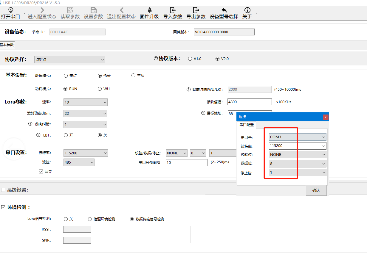 然后選擇DR206的默認(rèn)參數(shù):115200;N;8;1