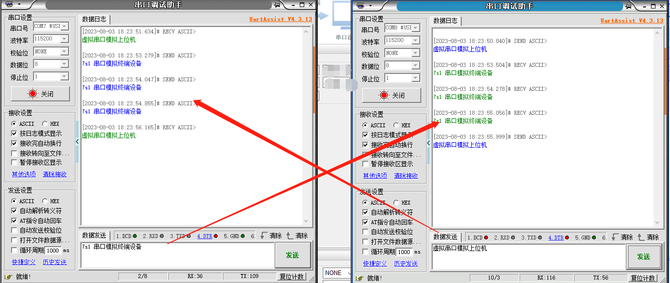 再打開一個串口調試助手,模擬上位機,調用虛擬串口。