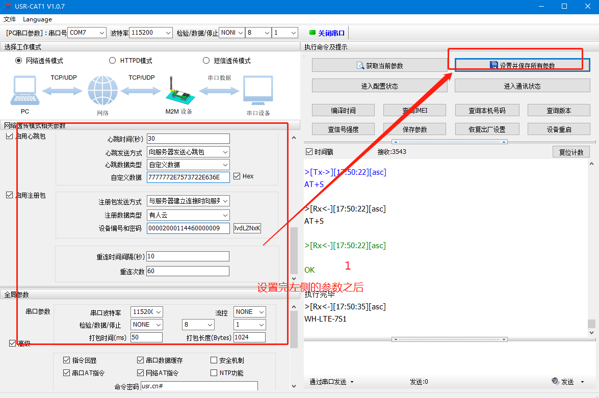 配置7s1全局參數(shù)的串口參數(shù) 波特率數(shù)據(jù)位校驗位停止位和傳感器的串口參數(shù)保持一致。本案例以默認為主。