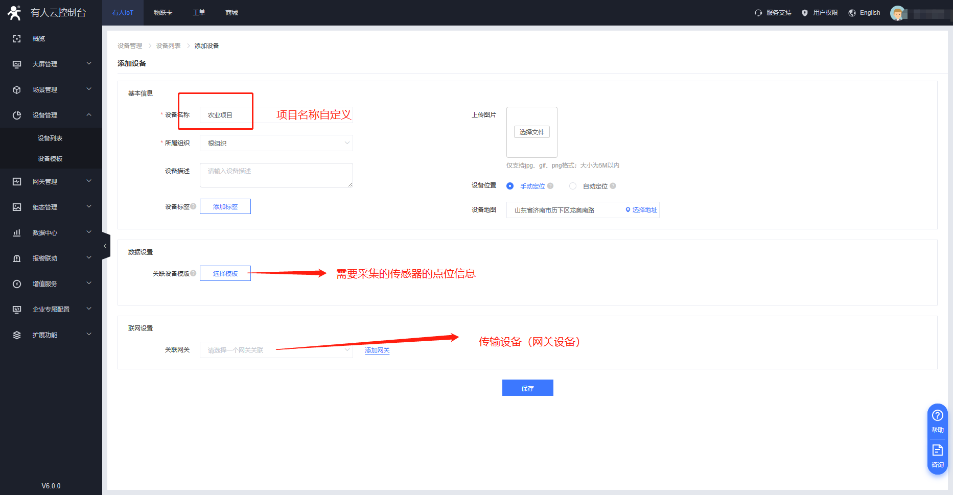 2、云平臺添加設(shè)備顯示