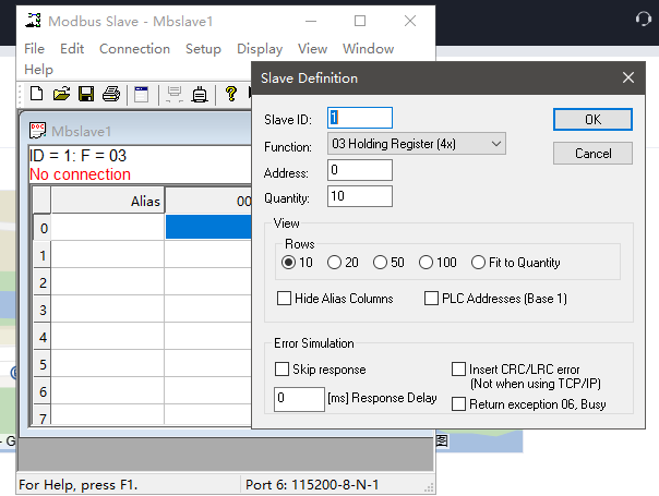 說明:本案例中,串口設(shè)備用電腦端的modbus slave軟件模擬來測試