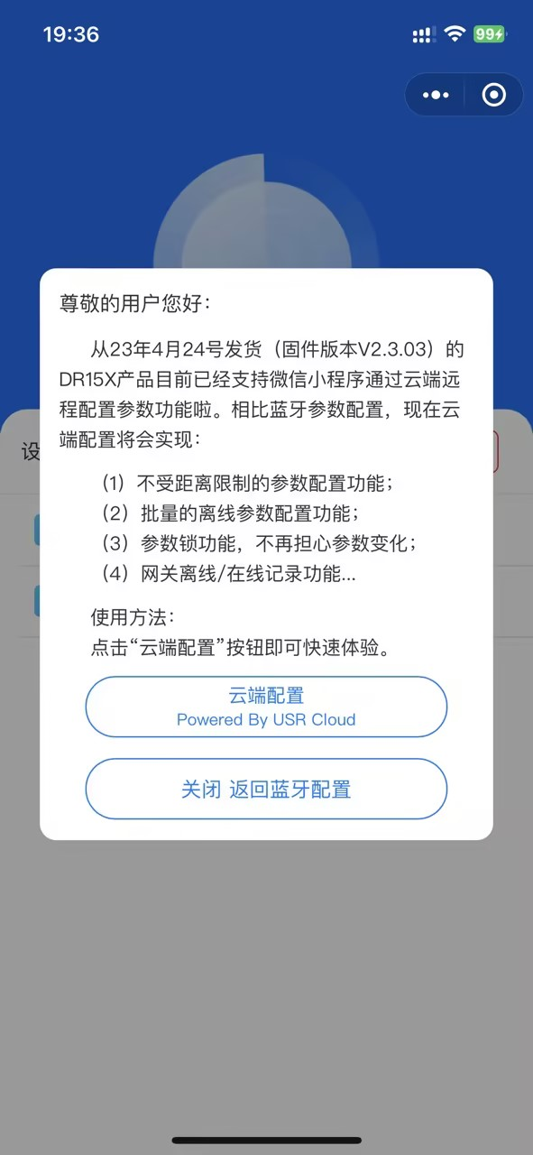 DTU 外殼正面貼有設(shè)備專屬二維碼,手機微信掃描該二維碼即可跳轉(zhuǎn)有人云手機端微信小程序登錄添加網(wǎng)關(guān)設(shè)備。有人云手機端微 信小程序介紹可以參考說明:http://cloud.usr.cn/document/334.htm