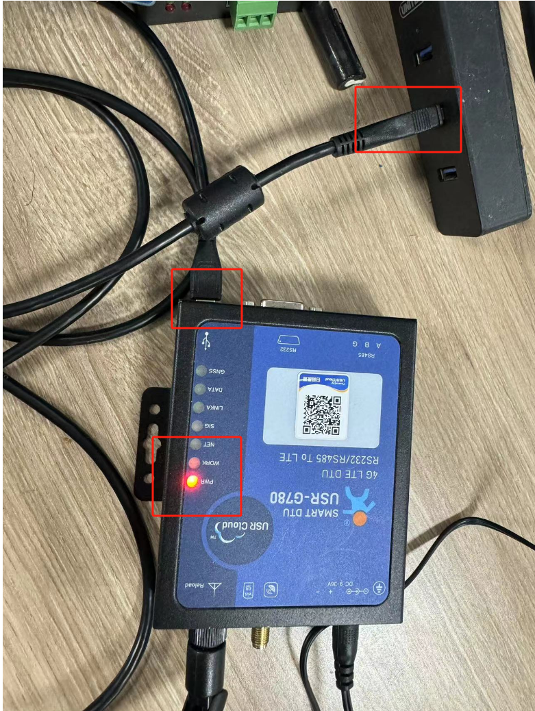 3.接著給780s斷電,確保所有指示燈都滅掉之后,按這reload按鍵給設(shè)備上電,上電之后松開reload按鍵,然后用數(shù)據(jù)線安卓口,接780s的升級口,另一端usb接電腦,如圖