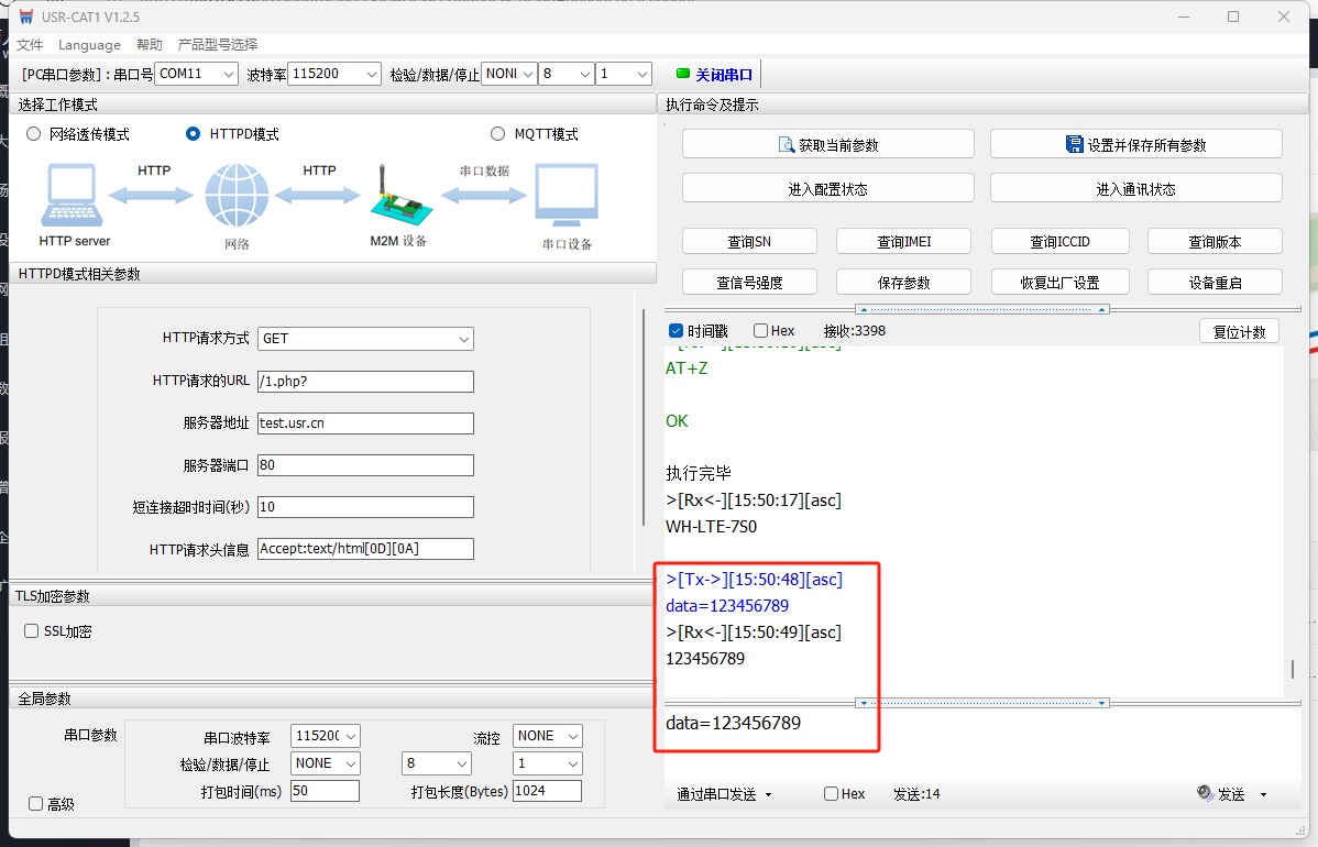 給測(cè)試服務(wù)器發(fā)送數(shù)據(jù):data=123456789,測(cè)試服務(wù)器收到數(shù)據(jù)并回復(fù)相同數(shù)據(jù)。