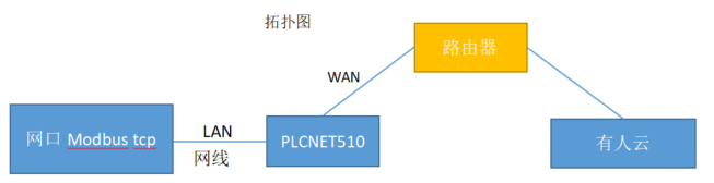 USR-PlCNET510 的WAN口接路由器上外網(wǎng),PlCNET510的LAN口接Modbus TCP設(shè)備,然后產(chǎn)品接12V電源適配器上電。