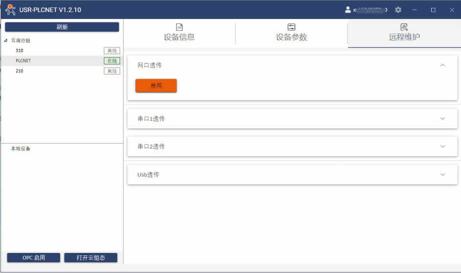 2、在遠(yuǎn)程維護(hù)內(nèi)開啟網(wǎng)口透?jìng)?/p>