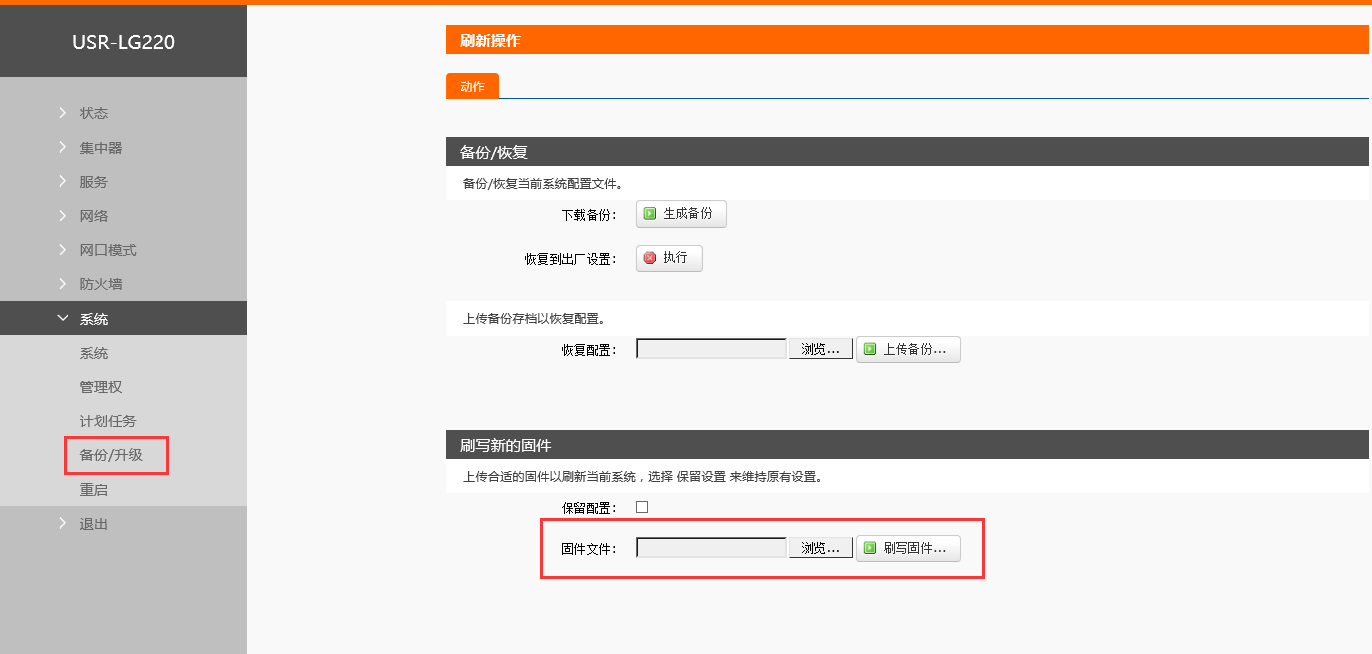 點(diǎn)擊系統(tǒng),選擇備份/升級(jí),選擇固件文件,確定后點(diǎn)擊刷寫(xiě)固件。