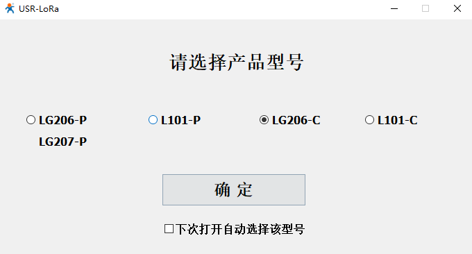 這里以有人LoRa終端USR-LG206-L-C為例。使用串口線連接LoRa終端的RS232接口與電腦,打開USR_LoRa軟件(http://www.xypctpk.cn/Down/USR_LoRa_SET-V1.0.8.rar),選擇LG206-C。