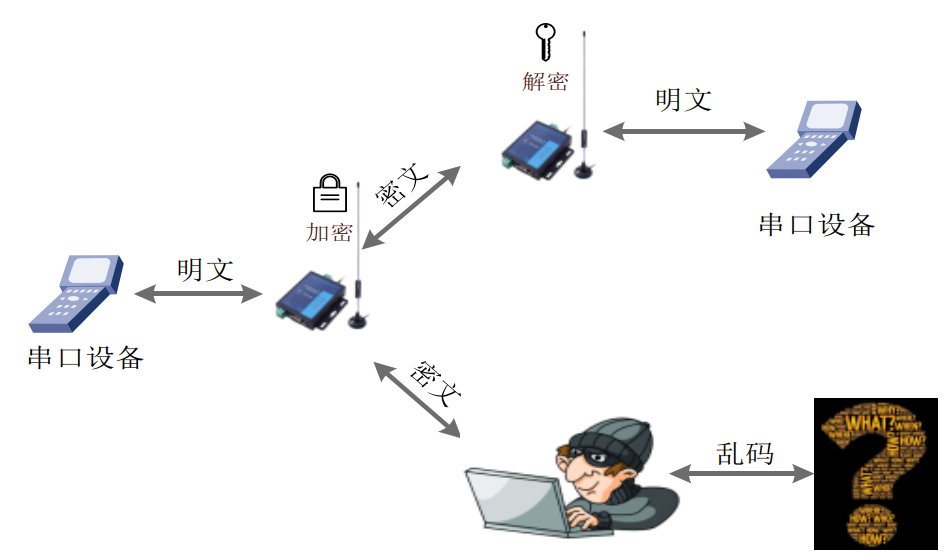 在數(shù)據(jù)傳輸環(huán)節(jié)對數(shù)據(jù)進行加密,使數(shù)據(jù)傳輸更加安全。加密字可通過 AT+KEY 進行設置,通信的產(chǎn)品都需要設置相同的加密字,為保障數(shù)據(jù)安全,此加密字只可設置不可查詢。