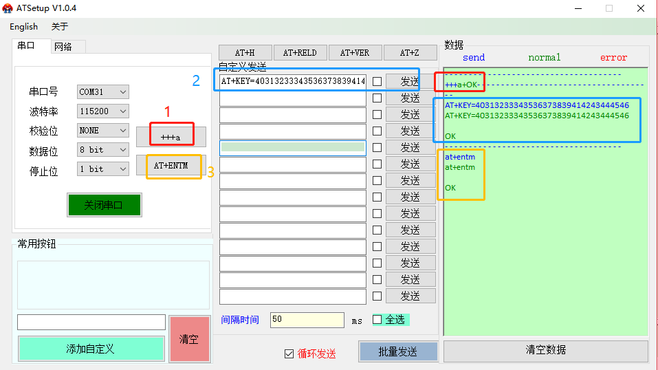 5.完成at指令配置后 ,串口設備給模塊發(fā)送指令“AT+ENTM”。