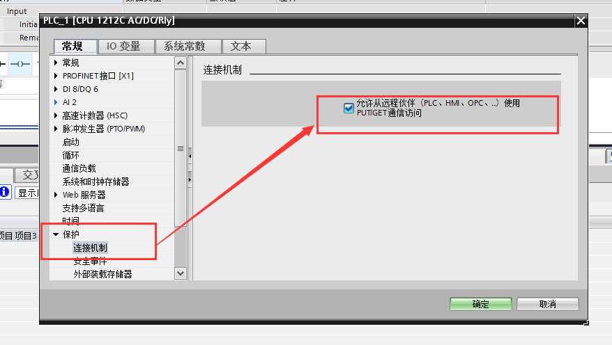 當(dāng)使用西門子s7-1200、s7-1500時,出現(xiàn)遠(yuǎn)程上下載可以實(shí)現(xiàn),遠(yuǎn)程監(jiān)控組態(tài)不行,需要將PLC的允許訪問權(quán)限打開。