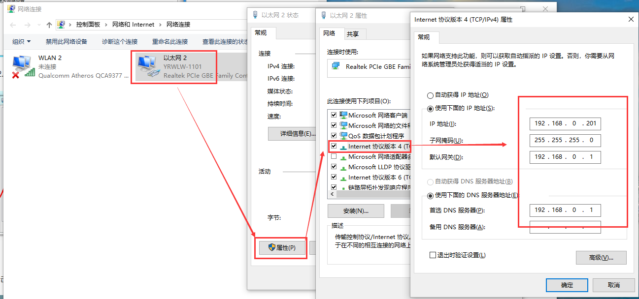 3、給電腦設置靜態(tài)Ip,設置成301默認目標Ip:192.168.0.201 。