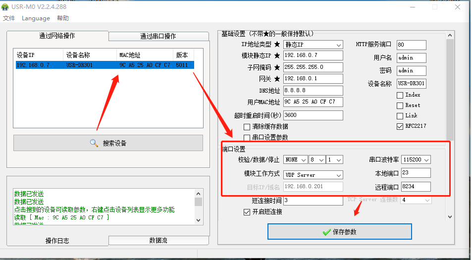 點擊“搜索設備”當搜索列表中出現(xiàn)301的設備后,單擊搜索到的設備。