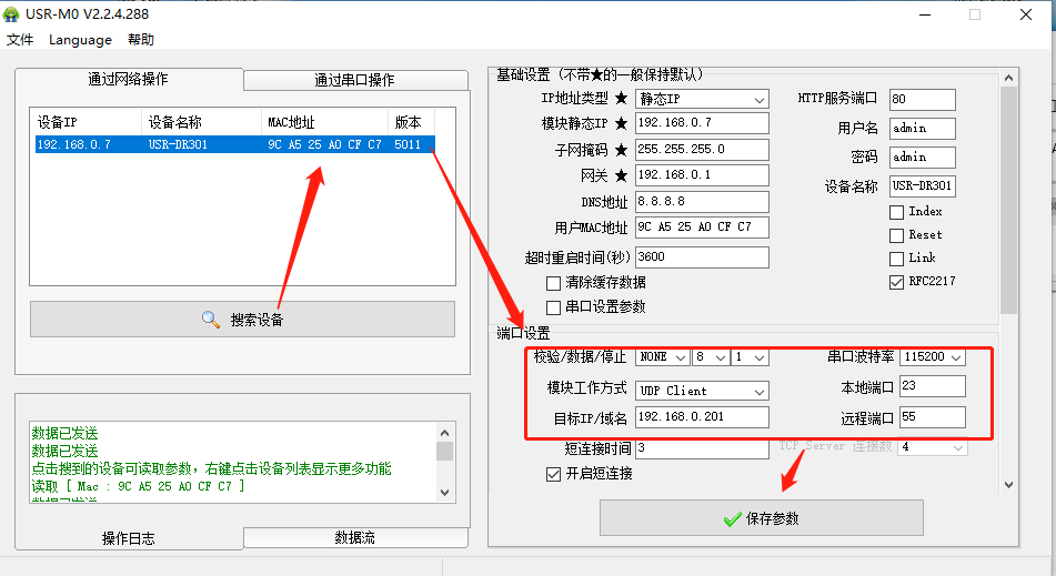 串口端選擇正確的串口(可在設備管理器--端口處查看)以及串口參數(shù),301出廠默認115200,N,8,1。