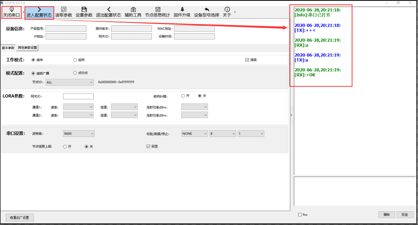 8) 206若是沒有配置修改過串口參數(shù),打開串口時,使用206默認(rèn)串口參數(shù):115200,None,8,1 打開。
