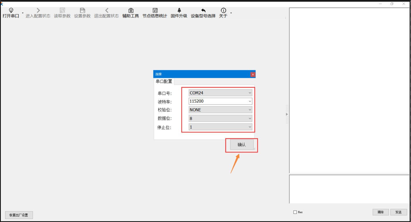 實際應(yīng)用時,串口設(shè)置內(nèi)的波特率、校驗位、數(shù)據(jù)位、停止需要配置為您206串口要要接的串口設(shè)備串口參數(shù),不然數(shù)據(jù)會是亂碼,本次案例為默認(rèn)參數(shù)未修改。 使用485串口線時流控配置為“485”,流控為485時也是可以使用232串口線通信的。