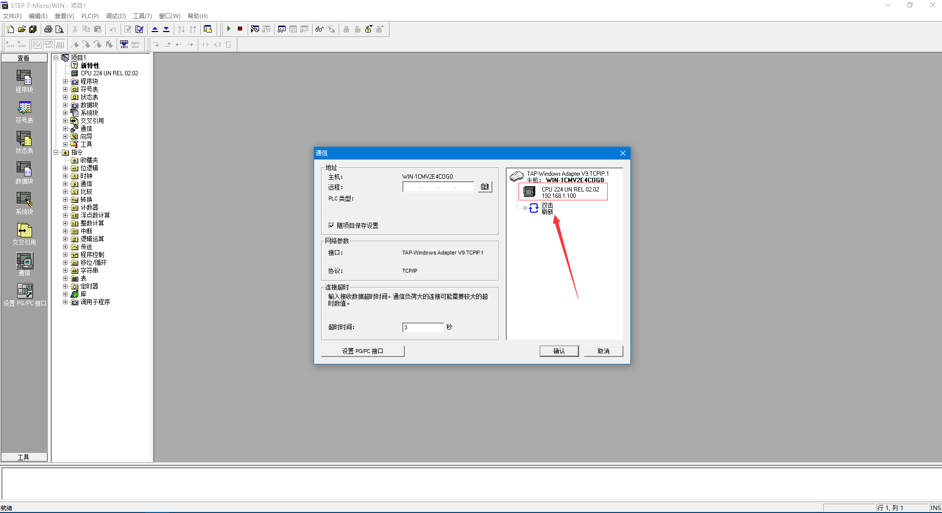 12.打開PLC100的上位機(jī)軟件,設(shè)置PG/PC接口,選擇虛擬網(wǎng)卡,點(diǎn)擊OK