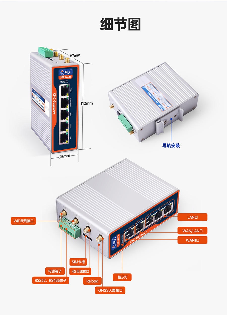 115*87*38 (L*W*H,不含電源端子、天線、天線座、導(dǎo)軌掛耳)